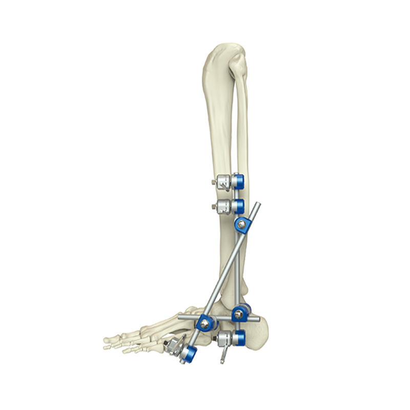 Les fixateurs externes de l'articulation de la cheville sont indiqués pour un large éventail de fractures de la cheville, y compris les fractures intra-articulaires, les fractures ouvertes et celles présentant des lésions importantes des tissus mous.Ils sont particulièrement utiles dans les cas où les méthodes de fixation traditionnelles, telles que les plaques et les vis ou les clous intramédullaires, ne sont pas réalisables.Les fixateurs externes de l'articulation de la cheville sont également utiles dans les cas où une mise en charge précoce est souhaitable, car ils assurent une fixation stable tout en permettant une mobilisation précoce.