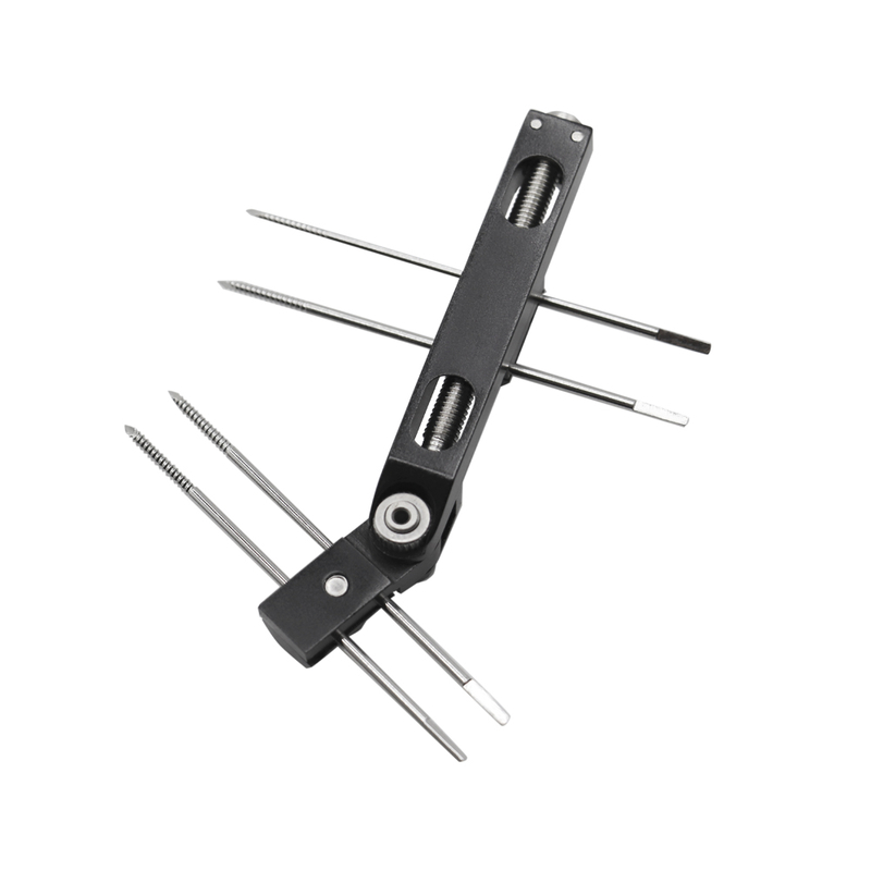 Un fixateur externe pour mini-fragments est un dispositif médical utilisé pour stabiliser les os qui ont été fracturés ou qui nécessitent un réalignement après une intervention chirurgicale.Il se compose de broches ou de fils métalliques qui sont insérés dans l'os de chaque côté de la fracture ou du site chirurgical.Les broches ou les fils sont ensuite connectés à un cadre externe, qui est ajusté pour maintenir l'os en place pendant qu'il guérit.