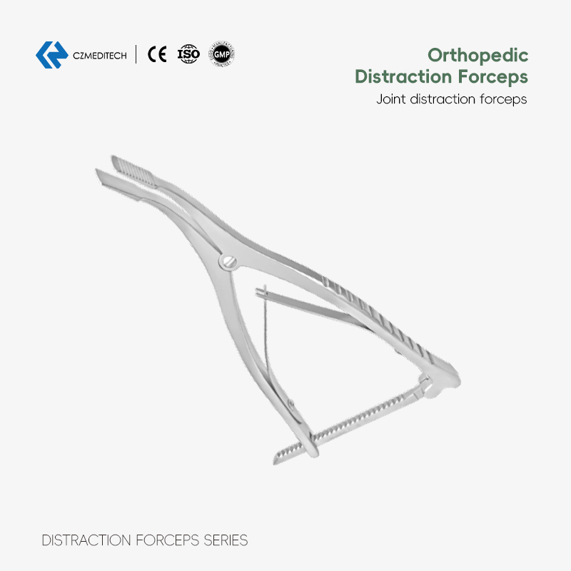 Pinces de distraction articulaires est un instrument chirurgical orthopédique couramment utilisé conçu pour fournir une distraction contrôlée et stable des espaces articulaires pendant les procédures opératoires.